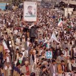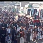 وعبرت الحشود في الساحات عن خالص التعازي والمواساة للجمهورية الإسلامية الإيرانية، قيادة وحكومة وشعباً، في استشهاد قائد الثورة الإسلامية السيد علي خامنئي، جراء العدوان الأمريكي الإسرائيلي الغادر.