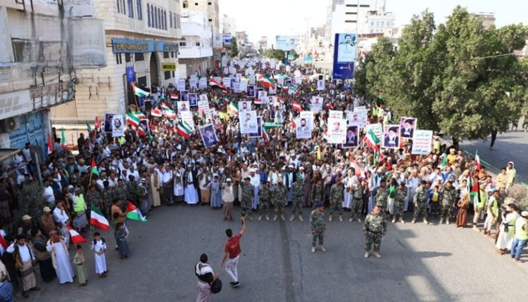 جدد أحرار محافظة الحديدة خروجهم الكبير؛ للتأكيد على تضامن الشعب اليمني مع كل الشعوب العربية والإسلامية التي تتعرض لاعتداءات صهيوأمريكية.