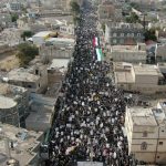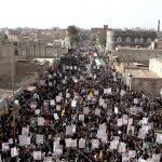 وأكد البيان الصادر عن المسيرة الوقوف الكامل مع الجمهورية الإسلامية في إيران مشيدا بضرباتها المنكلة بالأعداء وأن إحياء يوم القدس العالمي جزء من تحرك الشعب اليمني الجهادي الذي يبتغي به رضوان الله والتقرب به إليه.