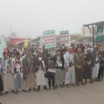 وأكد المشاركون في المسيرات التي تقدمها مدير عام مديرية عتمة المهندس عبدالمؤمن الجرموزي ومسؤول التعبئة العامة مطهر المحاقري والقيادات المحلية والتنفيذية والتعبوية والشخصيات الإجتماعية على الصمود والثبات اليمني مرددين هتافات العزة والكرامة والجهاد والمقاومة، والمؤكدة للأعداء والعالم أجمع بأن الشعب اليمني على أهبة الاستعداد لأي تطورات وأياديهم على الزناد لمواجهة قوى الطغيان والاستكبار العالمي