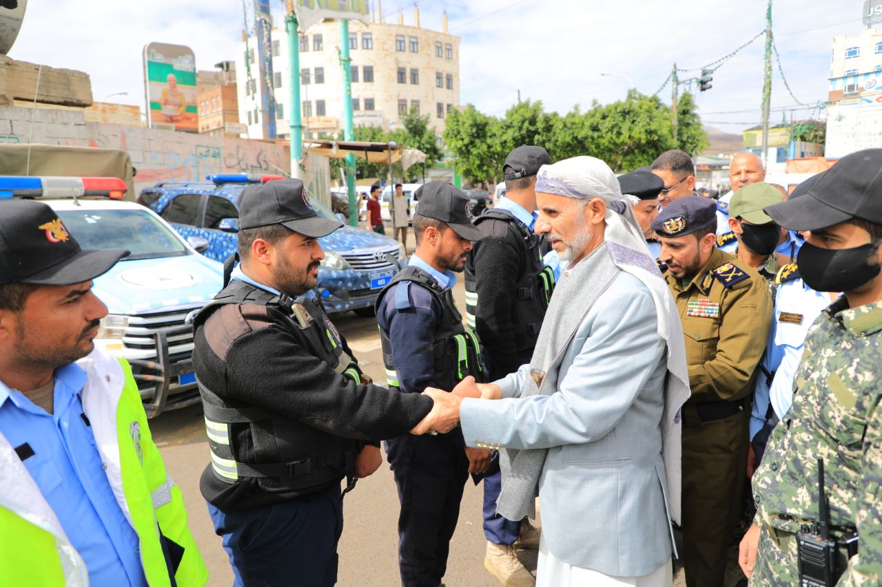 وخلال الجولة، كرم العلامة مفتاح عدداً من منتسبي شرطة المرور وقوات النجدة والدفاع المدني، تقديراً لجهودهم الاستثنائية وانضباطهم العالي في أداء مهامهم الوطنية، ناقلاً إليهم تحيات وشكر القيادة الثورية والسياسية.
