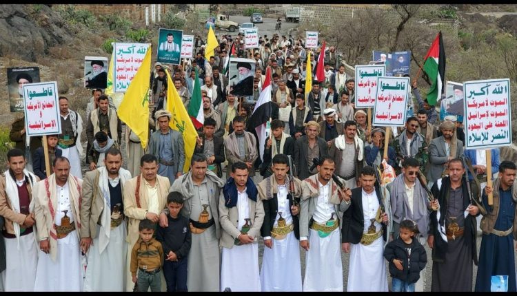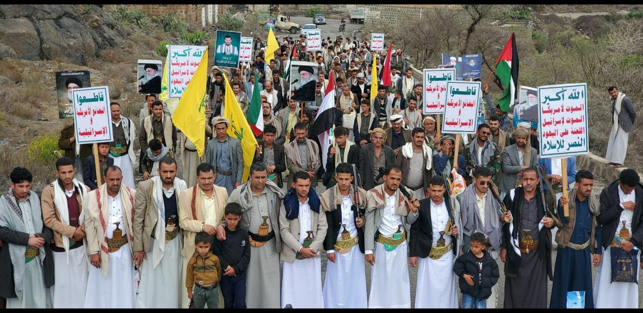 وجددّت المسيرات في بيانها، الدعوة للنظام السعودي “الظالم الخائن” إلى التوقف عن نهجه العدواني وفك ارتباطه بالأجندة الأمريكية والبريطانية والإسرائيلية تجاه اليمن والمنطقة، محذرة إياه من مغبة الاستمرار في هذا الارتهان.