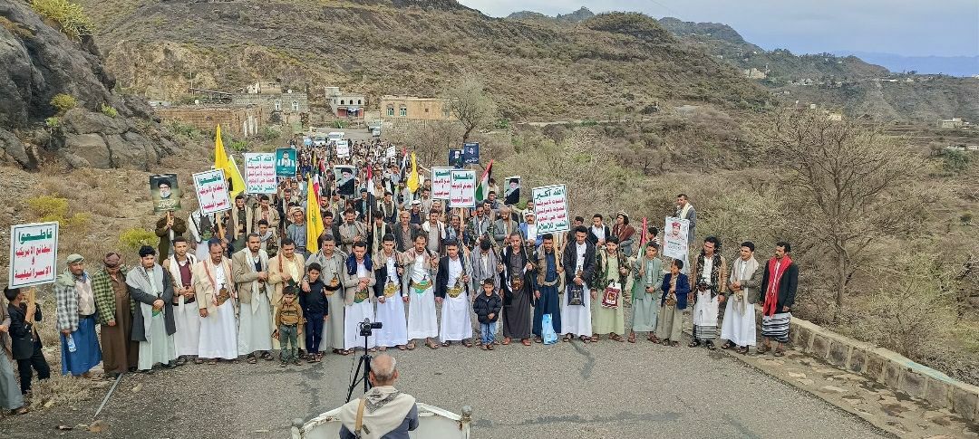 ورفع المشاركون في المسيرات التي تقدمها مسؤول التعبئة العامة بالمديرية مطهر المحاقري وقيادات محلية وتنفيذية وتعبوية وشخصيات إجتماعية أعلام اليمن وفلسطين وايران ولبنان وشعارات المقاومة والبراءة من الأعداء تجديداً للعهد والوفاء للقدس ونصرة للشعب الفلسطين.
