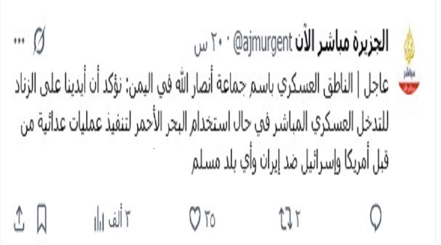 العودة إلى "كيف تصدر البيان الأول للقوات المسلحة اليمنية مشهد الاهتمام الإعلامي ؟" 14f17391-501b-45a5-a0ea-e251c3ccb43b التالي السابق