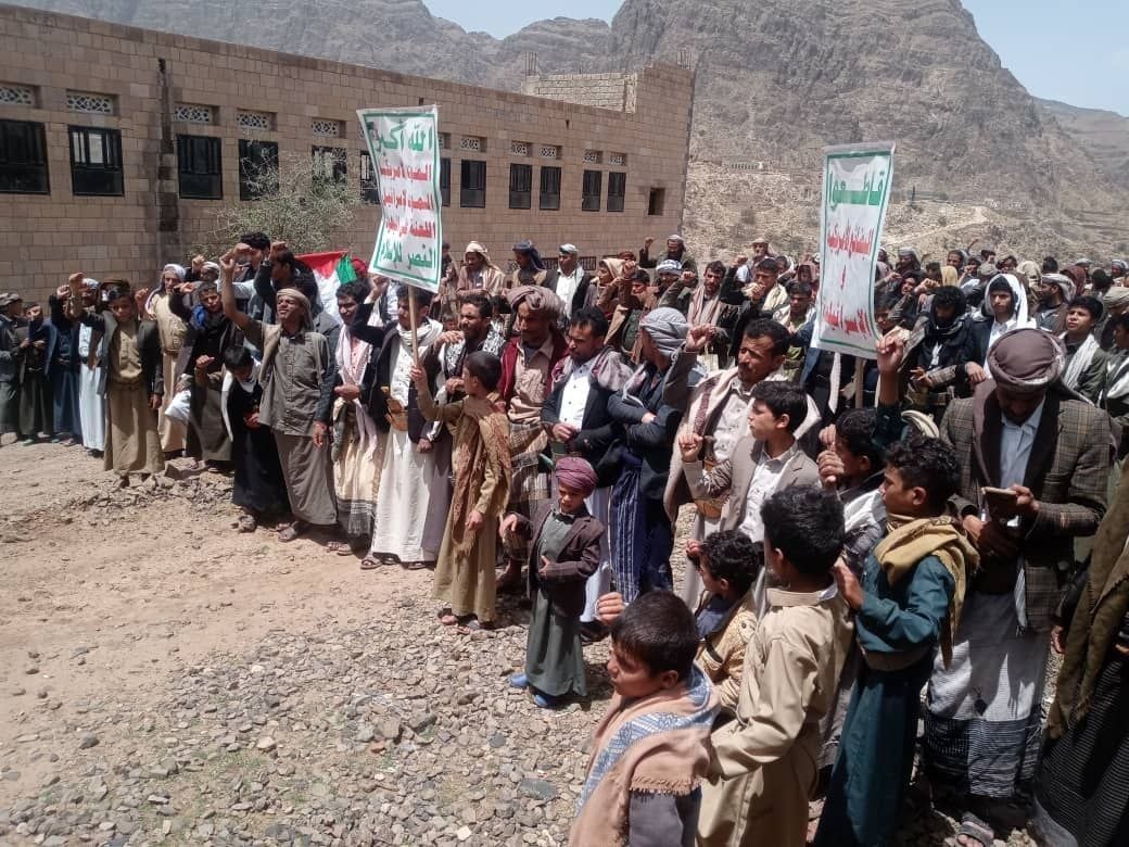 مسيرات ووقفات بمديرية عنس بعنوان ” محور واحد صف واحد في مواجهة الطغيان الأمريكي الإسرائيلي.”