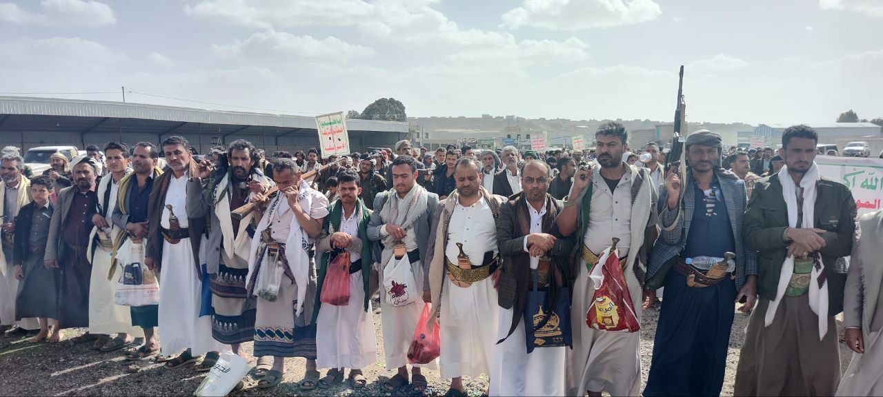 مسيره ووقفات بمديرية ميفعة عنس بعنوان “محور واحد صف واحد في مواجهة الطغيان الأمريكي الإسرائيلي”