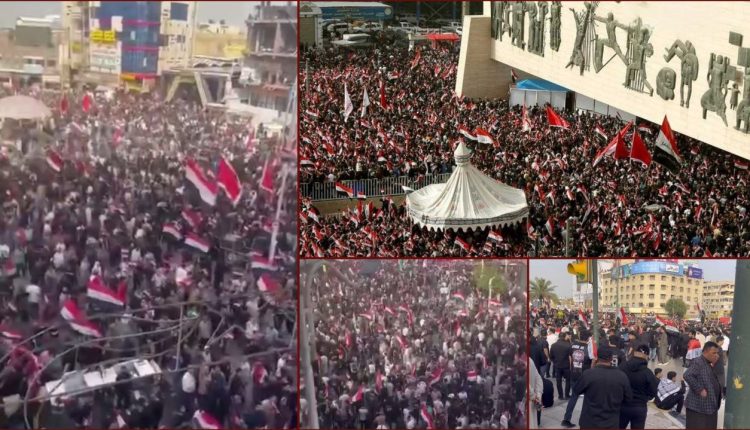 مسيرات حاشدة في العراق تضامناً مع إيران ورفضاً للاعتداءات الصهيوأمريكية في المنطقة