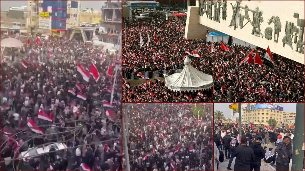 وردد أحرار العراق الشعارات المؤكدة على الرفض التام للعربدة الصهيوأمريكية، مجددين تضامنهم مع إيران في مواجهة العدوان، مؤكدين أن الاعتداءات الأمريكية على العراق لن تمر دون عقاب قاسٍ.