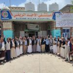 افتتح بمستشفى الأحد الريفي في مديرية وصاب السافل بمحافظة ذمار، اليوم، مخيم مجاني لطب وجراحة العيون، تنفذه جمعية الرعاية الصحية للمجتمعات المتضررة، بتمويل من هيئة الزكاة بالتنسيق مع وزارة الصحة ومكتبها بالمحافظة.