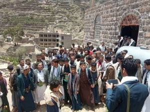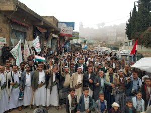 خرج أبناء مديريةوصاب العالي محافظة ذمار اليوم في ثمان ساحات بمسيرات جماهيرية شعبية تحت شعار .. شكرا وحمدا لله واحتفاء بالنصر.. ساحاتنا واحدة في مواجهة الصهيونية.