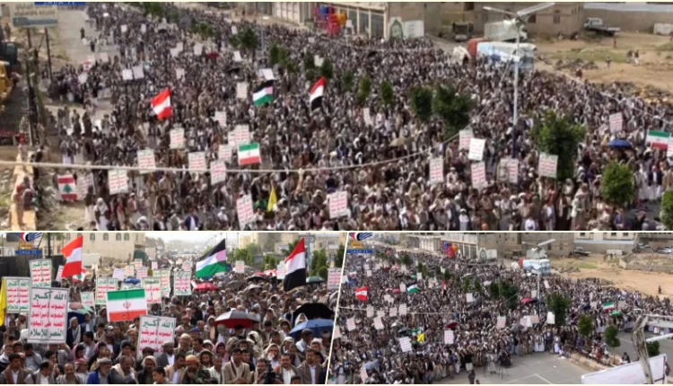 ورفعوا أعلام اليمن وفلسطين ولبنان وإيران والعراق، مؤكدين استمرار الموقف الثابت والمبدئي في نصرة الشعب الفلسطيني وكل قضايا الأمة، والتمسك بخيار مواجهة المشروع الصهيوني، وتعزيز معادلة الردع ووحدة الساحات.