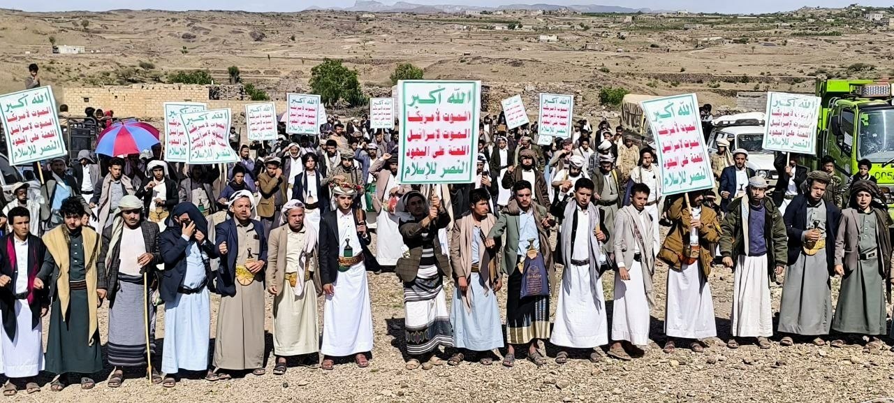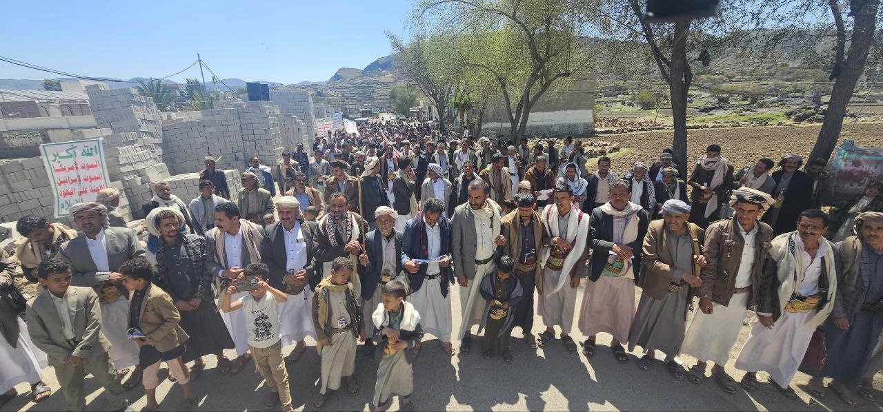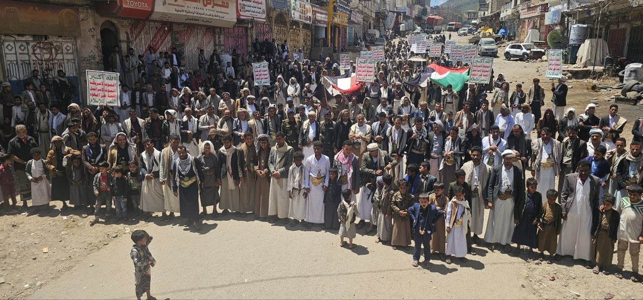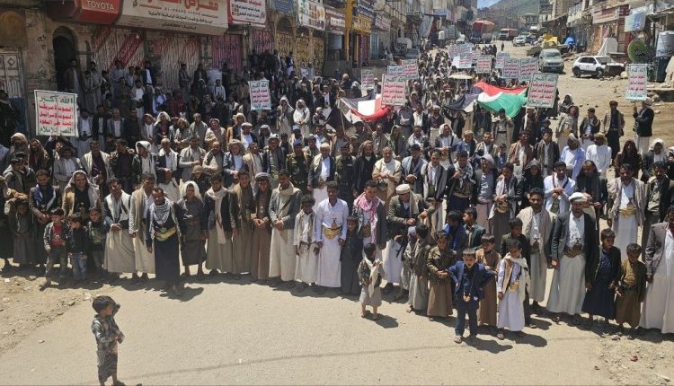 مسيرات مُتعدّدة بمديرية جبل الشرق بذمار تحت شعار “ساحاتنا واحدة .. مع فلسطين ضد الطُغيان ولن نترك لبنان”