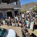 ورددّ المشاركون في المسيرات التي تقدّمها مدير عام المديرية أحمد الصيح وقيادات تنفيذية ومحلية وتعبوية وعسكرية وأمنية وشخصيات اجتماعية ، شعار البراءة من الأعداء، وهتافات التعبئة والتحشيد.