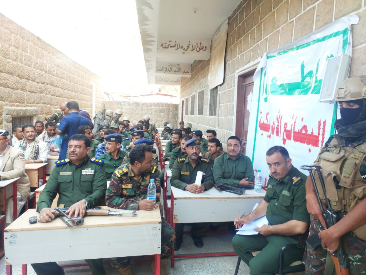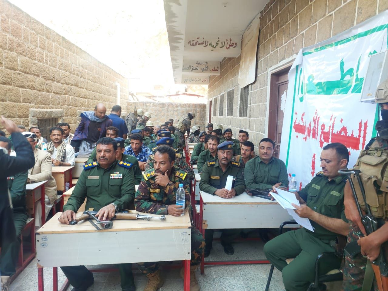 تخللت الفعالية التي حضرها مدير أمن مديرية وصاب السافل العقيد ياسر العماري، ومدير أمن مديرية وصاب العالي العقيد محسن هادي، وقائد المنطقة الأمنية لوصابين وعتمة المقدم نشوان الشرماني، ومدير قسم شرطة الشهيد عبدالوهاب نشطان الرائد خالد الموقعي، وعدد من القيادات الأمنية والمجتمعية، قصيدة شعرية للشاعر خالد الضوراني، عبرت عن دلالات الشعار وأثره في ترسيخ الوعي، وتعزيز الثبات في مواجهة التحديات.