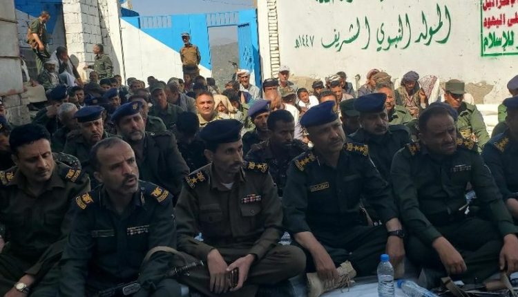 تخلل الفعالية بحضور عدد من مدراء فروع المكتب التنفيذي والقيادات الأمنية لإدارتي مديريتي عتمة ومغرب عنس قصيدة شعرية للشاعر عبدالرزاق الكاشبة عبرت عن عظمة المناسبة.