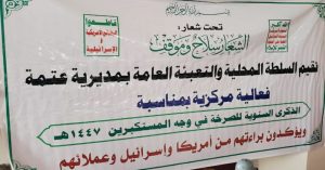 نظمت السلطة المحلية والتعبئة العامة في مديرية عتمة اليوم فعالية خطابية، إحياء للذكرى السنوية للصرخة في وجه المستكبرين 1447ه