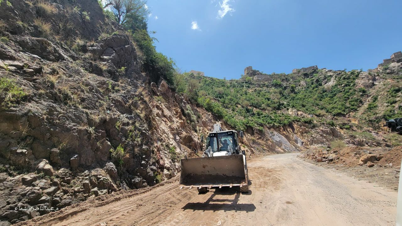 مدير عام عتمة يتفقد أعمال فتح العبارات ورفع الانهيارات الصخرية بطريق المقرانة