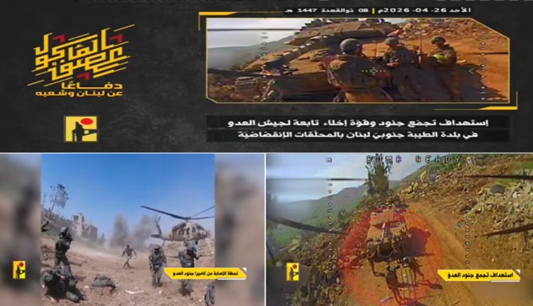 كما عرض الإعلام الحربي للمقاومة مشاهد من عملية استهداف المقاومة الإسلامية “تجمّع جنود وقوة إخلاء تابعين لجيش العدو الإسرائيلي في بلدة الطيبة جنوبي لبنان بمحلّقتين انقضاضيّتين”، ووثقت المشاهد لحظات الاستهداف وهروب مروحية العدو تاركةً خافها القتلى والجرحى وحالةً من الهلع والإرباك في صفوف جنود العدو، ما يثبت أن اليد العليا في الميدان هي للمقاومة التي ترفض تدنيس الأرض وسياسة هدم البيوت والاعتداء على السيادة.