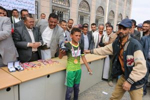 نظم, صباح اليوم الاثنين, مكتب التربية والتعليم بمدينة ذمار, بطولة “سابق الطرق” لمسافة 2 كيلو متر للمرحلة الاساسية تحت سن 15 سنة, بشارك 350 طالبا من 70 مدرسة حكومية وأهلية تحت شعار” سنواجة العدوان جيلا بعد جيل”.