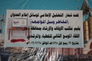 نظم مكتب الأوقاف والإرشاد بمحافظة ذمار اليوم، اللقاء الموسع الثاني للعلماء والخطباء والمرشدين بالمحافظة، لمناقشة خطر التضليل لوسائل إعلام العدوان وسبل مواجهتها.