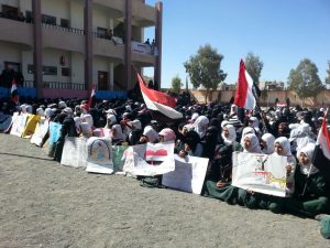 حيث نفذت مختلف مدارس القطاع الشمالي بمدينة ذمار صباح اليوم الثلاثاء وقفة احتجاجية مركزية في ساحة مدرسة أسماء للبنات تخلفها العديد من المشاركات الخطابية الشعرية التى أوضحت مدى صمود الشعب اليمني لمايقارب العامين بدون ضعف أو وهن وأرسل الطلاب والطالبات رسائل الشكر والعرفان لأبطال الجيش واللجان الشعبية في مختلف الجبهات .