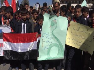 إلى ذلك أقام طلاب مدرسة العهد الجديد بمديرية جهران وقفة احتجاجية على نفس السياق وتشهد مختلف مدارس مديريات المحافظة إقامة وقفات احتجاجية متعددة تؤكد على صمود الشعب اليمني .