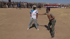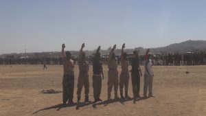 وجدد أبناء مديرية عنس خلال مهرجان وعرض عسكري مهيب ضمن اطار حملة “اشداء على الكفار” صباح اليوم الأحد، الاستعداد للدفاع عن الوطن وأمنه واستقراره والتوجه للجبهات لمساند الجيش واللجان الشعبية للرد على جرائم العدوان بحق الشعب اليمني.