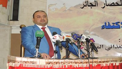 وتطرق إلى مايعانيه الوطن من مؤامرة وعدوان ظالم وحصار جائر وحرب اقتصادية تسعى إلى إخضاع الشعب اليمني وتحويله من منتج إلى مستهلك لمنتجات دول العدوان من خلال استهداف المنشئات الاقتصادية وقطاع الزراعة في مختلف المحافظات .