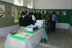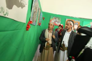 وفي القسم الأخر من المركز الثقافي, افتتح معرض الفنون التشكيلة والمجسمات التي صنعت بأيدي زوجات وشقيقات وبنات الشهداء, توضح فيها مدى وحشية العدوان ضد الأبرياء في اليمن وتخاذل العالم تجاه ما يحدث في اليمن من جرائم وحرب إبادة لا تستثني لا بشر ولا حجر.