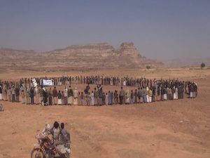 أبناء قبائل الاعماس استنكروا في الوقفة جرائم العدوان واستهداف النساء والأطفال وخاصة استهداف مجلس عزاء للنساء بمديرية أرحب ومنزل الشيخ الغادر بمديريه خولان.