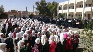 إلى ذلك نظمت معلمات وطالبات مدرسة الشيماء للبنات وقفة أكدن فيها على الثبات والصمود واستمرار العملية التعليمية رغم محاولات العدوان لتوقيف عجلة التعليم.