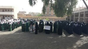 صور | وقفة احتجاجية لطالبات ومعلمات مدرسة بلقيس بمدينه ذمار.