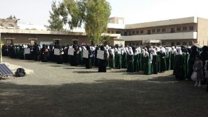 نفذن طالبات ومعلمات مدرسة بلقيس للبنات بمدينه ذمار صباح اليوم الثلاثاء، وقفة استنكاريه واحتجاجية ضد العدوان الأمريكي السعودي الصلف والغاشم على مختلف أطياف الشعب اليمني مؤكدات مطالبتهن بصرف المستحقات، كما أعلن عن صمودهم واستمرارهم في العملية التعليمية مهما كانت النتائج.
