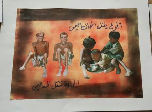 من جانبه اوضحت الدكتوره ابتسام العلفي رئيس قسم التربية الفنية الى ان المعرض المتوقع اقامته قريبا يضم أعمال متنوعة وأنشطة متعددة منها اللوحات الورقية كولاج تمت باستخدام تقنية اللصق ولوحات اخرى زيتية ولوحات الكاريكاتير، ومعظمها تعبر عن آثار الدمار والخراب جراء العدوان السعودي على بلادنا مما ادى الى وحرمان الأطفال من الأمن والعيش الكريم في بلادهم وحرمانهم من التعليم بسبب سوء الأوضاع.