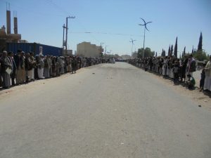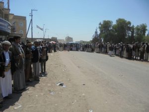نفذ أبناء مديرية جهران بمحافظة ذمار صباح اليوم الإثنين، وقفة إحتجاجية رفضًا واستنكارًا لما يقوم به العدوان الأمريكي السعودي من استهداف غاشم لكل مقومات الحياة.