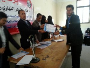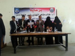 حضر الصباحية رئيس جامعة ذمار أ.د طالب طاهر النهاري واعضاء هيئة التدريس بالكلية وعدد من الأدباء والشعراء في المحافظة .