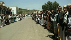 نظم أبناء مخلاف بني قشيب بمديرية جبل الشرق محافظة ذمار صباح اليوم الخميس وقفة احتجاجية بعنوان “لا للإرهاب الأمريكي على اليمن” لمطالبة الأمم المتحدة بصرف مرتبات الموظفين.