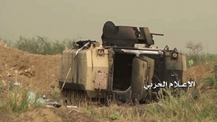 وصرح مصدر عسكري أن أبطال الجيش واللجان الشعبية تمكنوا من تدمير آلية سعودية في موقع الهنجر وقنص جندي سعودي في ذات الموقع.
