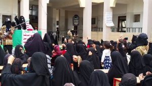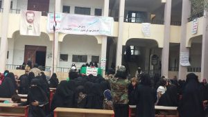 نظمن حرائر رصابة بمديرية جهران محافظة ذمار عصر اليوم الجمعة، فعالية خطابية وثقافية تحت شعار “صرخة نحو الأقصى” تضامناً مع الأقصى الشريف تلبية لنداء قائد الثورة السيد عبدالملك الحوثي وإدانة واستنكاراً لما يتعرض له الشعب الفلسطيني المظلوم من اعتداءات من قبل العدو الإسرائيلي الإجرامي.