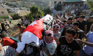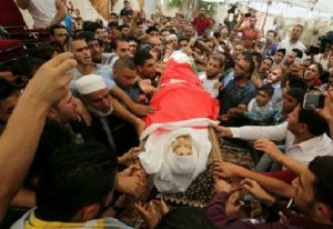 وعقب دفنه انطلق المشيعون في تظاهرة من المقبرة الى شوارع الوحدات، وسط هتافات بينها “طالعلك يا عدوي طالع من كل بيت وحارة وشارع″ و”عالقدس رايحين شهداء بالملايين”.