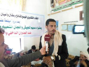 كما اعلنوا براءتهم من كل من يسعي إلى الانخراط في صفوف العدوان عبر تقديمه تنازلات والتفريط في تضحيات الشعب اليمني.. مجددين التأكيد على وقوفهم إلى جانب أبطال الجيش واللجان الشعبية في الدفاع عن الوطن واستمرار رفد الجبهات بالرجال والقوافل الغذائية.