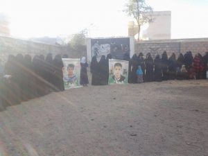 نظمن حرائر مديرية جبل الشرق بمحافظة ذمار بالتنسيق مع الهيئة النسائية لأنصارالله ، وقفة احتجاجية تنديدا بجرائم العدوان الأمريكي السعودي بحق الشعب اليمني منذ ألف يوم.